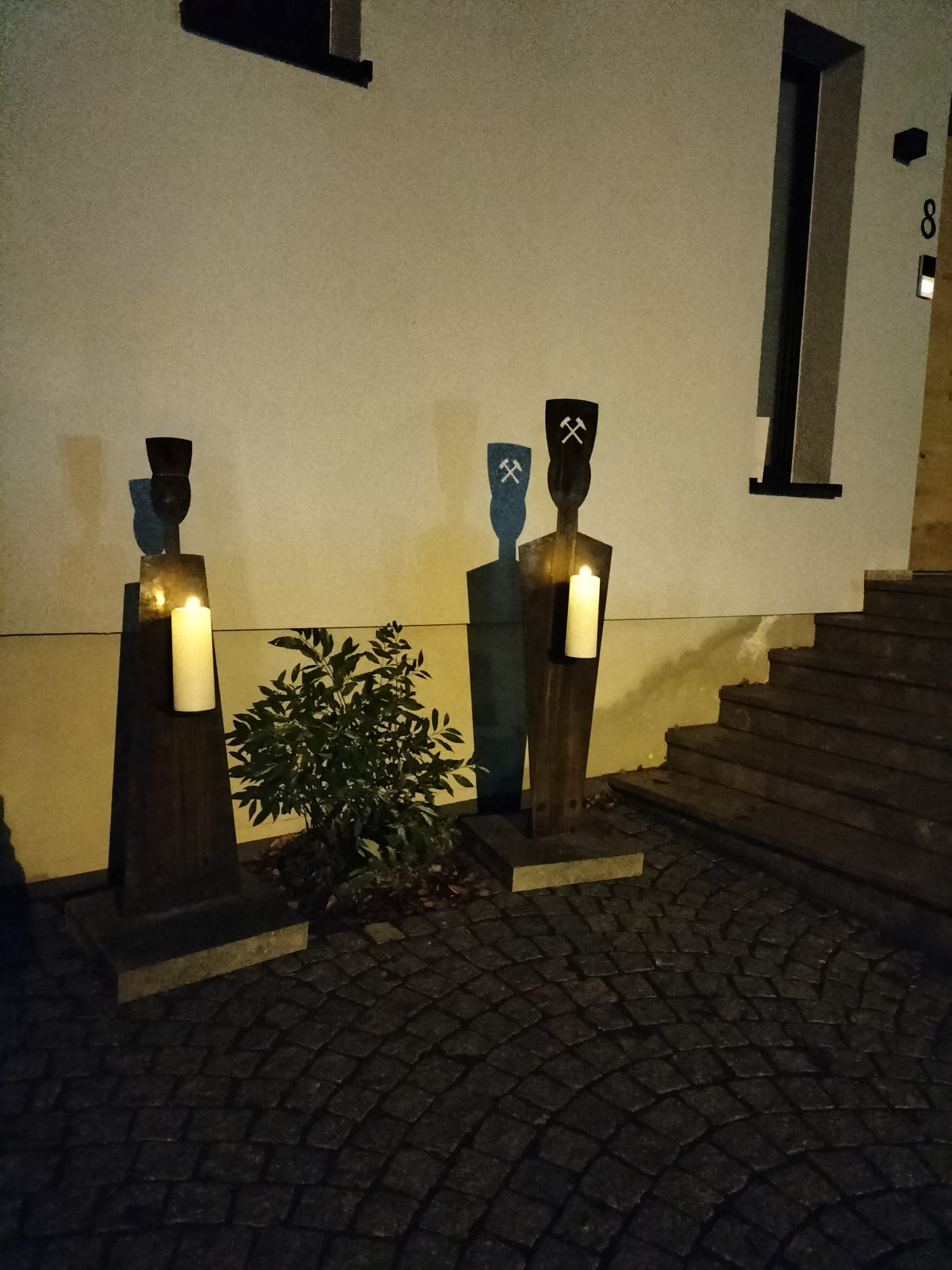 Engel aus formstabilem und wetterbeständigem Stahlblech. Auf Wunsch kann einseitig eine waagerechte Kerzenhalterung für stimmungsvolle Beleuchtung montiert werden.