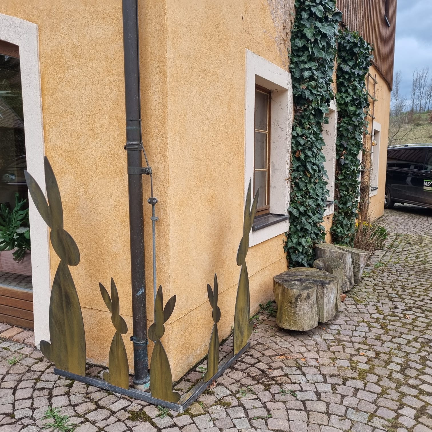 Osterhase aus formstabilem und wetterbeständigem Stahlblech.